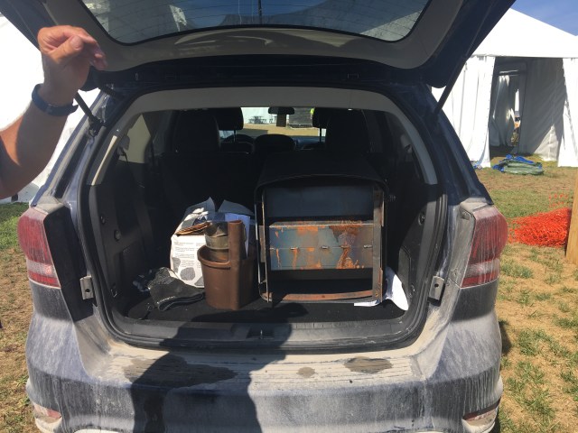 Once we got back to Echo, our mission was to get the sauna heater to my car. One of our team leads met us by the sauna area, and we loaded the heater into the back of the SUV he had. We then drove up to Ruby, and straight into the long term parking to my car. Using mostly the Team Lead’s muscle, we transferred the heater from one car to the other. Unfortunately the trunk opening in the rental car I have here is about an inch too small, and we couldn’t fit it in there. We did manage to wrangle it into the backseat though.